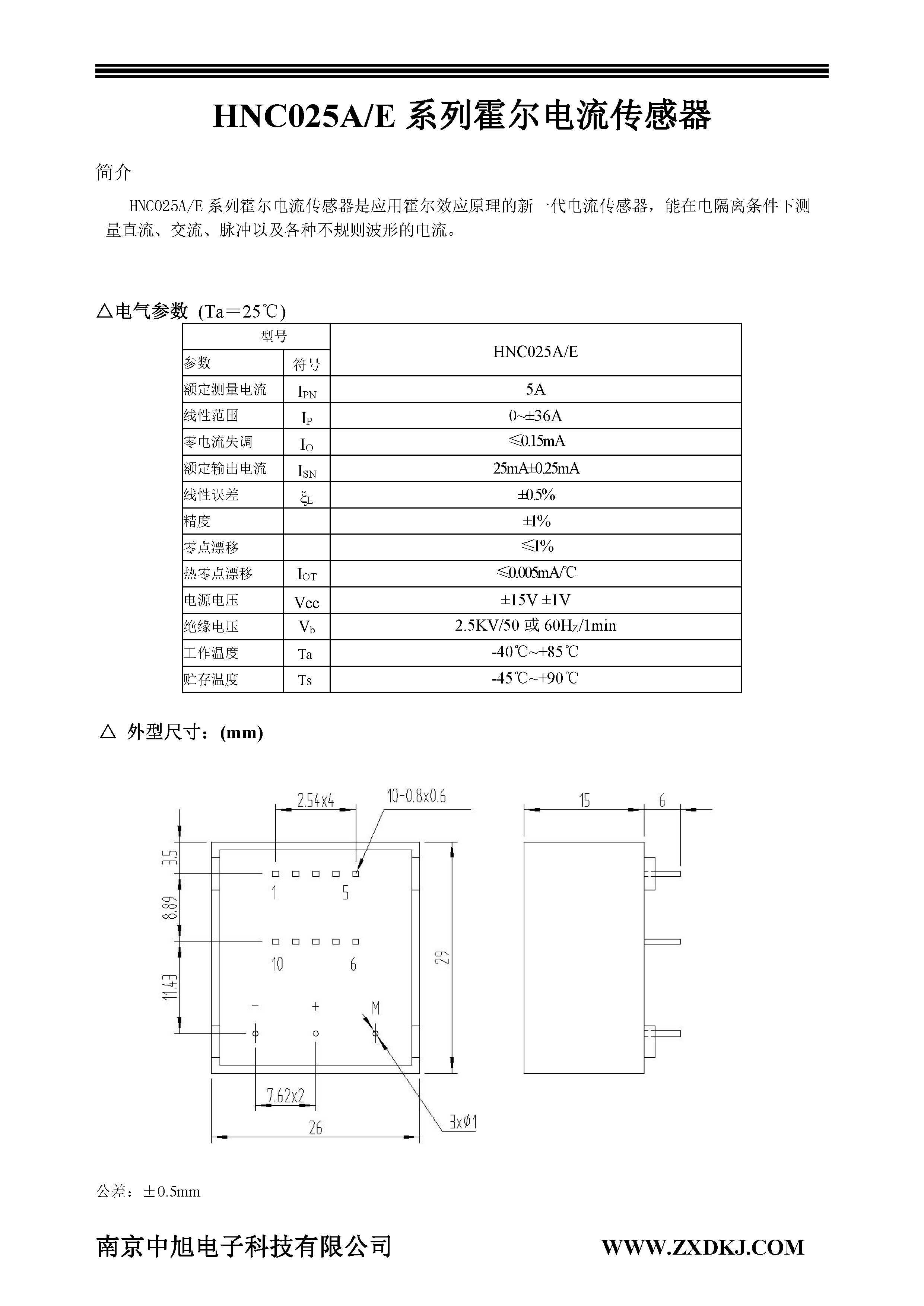 HNC025A series Hall current sensor is a new generation of current sensor using the principle of Hall effect. It can measure currents of DC, AC, pulse and various irregular waveform under electrical isolation.